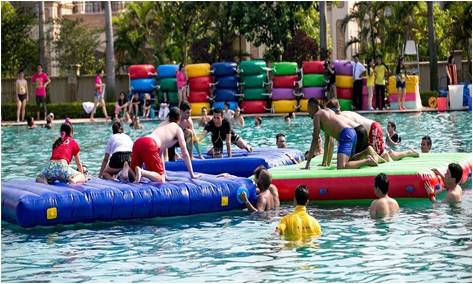 自主研發(fā)的60多個(gè)特色水上項(xiàng)目 ,可以讓團(tuán)隊(duì)在水花中玩的獨(dú)特、玩的盡興、玩的瘋。大航海、水花保齡球、海底龍宮、珍珠港、泰坦尼克號(hào)、不滅的燈塔、聯(lián)合艦隊(duì)、引航燈、大海戰(zhàn)、水球接力、快艇接力、水中撈月、海神騎士、潛艇戰(zhàn)、深海怪獸、搶灘登陸、擊沉“大和號(hào)”等你來(lái)戰(zhàn)斗?。?!